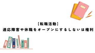 未分類【転職活動】適応障害や休職をオープンにするしないは権利 転職活動において、自身が体験した休職や適応障害に関して企業側にオープンにするか悩んでいませんか?本記事では、私が実際に転職活動時、休職や適応障害を伝えるかどうかに関して記事にしています。同じ境遇にある方にとって参考になる記事だと思います。 2025.11.23未分類