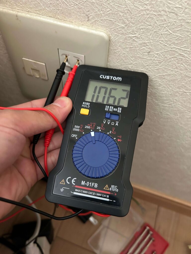 最終的にブレイカーを上げて、ちゃんと電気が来たか最終確認をテスターでしましょう